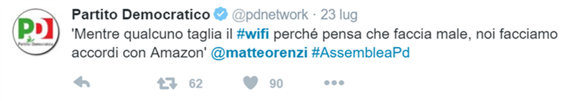 Da alcuni giorni è polemica tra il Partito Democratico e il Movimento Cinque Stelle. Un articolo di Repubblica del 21 luglio riporta “La sindaca Chiara Appendino non aspira soltanto a mettere a dieta i torinesi incoraggiando l’alimentazione vegetariana e vegana su tutto il territorio cittadino. Prospetta anche di spegnere gli impianti wi-fi, che considera potenzialmente pericolosi per la salute”. Cogliendo la palla al balzo, Renzi e il Pd si sono intromessi, ironizzando sulle politiche della giunta.