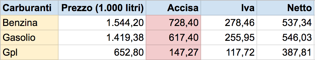 Le singole accise non esistono da oltre vent’anni